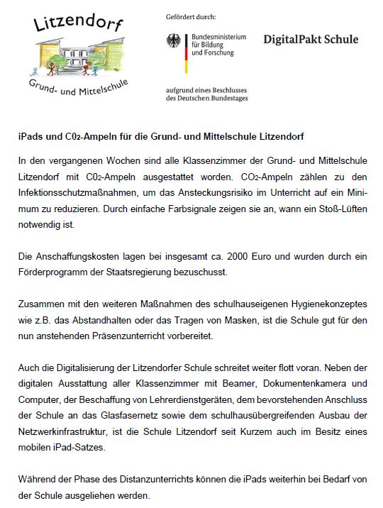 Startseite » Aktuelles » Allgemein » iPads und Co2-Ampeln für die Litzendorfer Schule