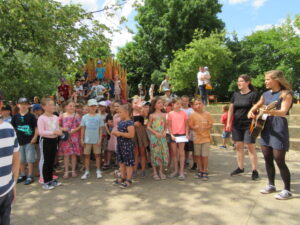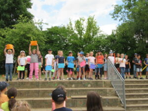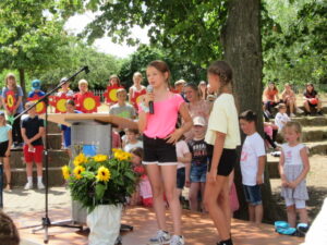 Unter dem Motto „50 Jahre Schule Litzendorf“ – die eigentliche Jubiläumsfeier war der Corona-pandemie leider zum Opfer gefallen – präsentierten einzelne Klassen ein abwechslungsreiches Programm. Es gab viele Mitmachaktionen wie z.B. Sackhüpfen, Dosenwerfen, Buttonherstellung, Basketballdribbling und Vieles mehr.