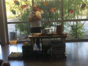 Ein großes Dankeschön geht an unseren Hausmeister Jörg. Mit seiner Leidenschaft führte er die Kinder behutsam durch den gesamten Prozess des Apfelpressens.