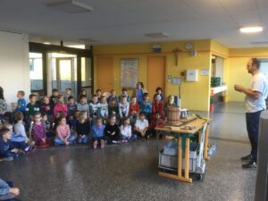 Auch dieses Schuljahr fand wieder für unsere drei ersten Klassen das Apfelpressen-Projekt statt. Die Kinder konnten miterleben, wie aus den von ihnen selbst gesammelten Äpfeln der frisch gepresste, vorzügliche Apfelsaft wurde.