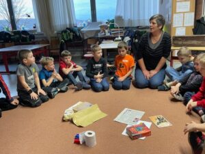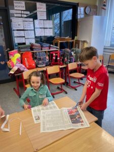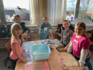 Wir, die Kinder der Klassen 2b und 2c beschäftigten uns vor Weihnachten mit dem Material „Papier“. Im Rahmen des Kulturklassenprojekts „Papier schöpfen“ luden unsere Klassenlehrerinnen Frau Peters ein, die eine echte Expertin auf diesem Gebiet ist.
