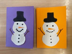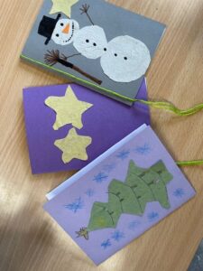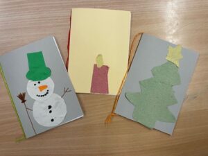 Nachdem das Papier getrocknet und gebügelt war, konnten wir es für die Gestaltung unserer Weihnachtskarten verwenden.