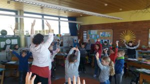 Seit dem Schuljahr 2015/2016 gibt es für die Kinder an unserer Schule das Angebot in ihren Klassen kleine Yoga – Übungen zu erlernen, die nicht nur Freude machen, sondern sie auch darin unterstützen, eine gute Konzentration für den Unterricht aufzubauen und zu erhalten.