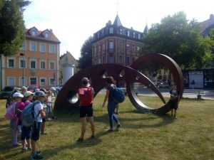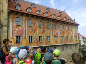 Genau zwei Wochen später durften wir mit den beiden Autorinnen zu einer abenteuerlichen Stadtführung durch Bamberg aufbrechen. Wir erlebten nun viele Schauplätze des Buches auf eine ganz andere Art und Weise. Wir rätselten und malten und außerdem lernten wir noch sehr viel Interessantes über diese schöne Stadt.