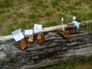 Nun reichte es uns auf dieser einsamen Insel! Wir entwarfen und bauten Miniaturboote. Alle Boote bestanden den „Schwimmtest“. Sogleich verabschiedeten wir uns von unserer Piratenkapitätin und machten uns mit unseren Booten auf die Rückkehr nach Litzendorf.