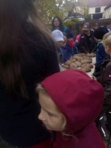 Endlich war es dann soweit. Die ersten Brote waren fertig und konnten mit einem langen Schieber aus dem Ofen geholt werden. Sie sahen richtig lecker aus und rochen einfach prima. Die frischen, wohlriechenden Laibe durften alle stolz mit nach Hause nehmen.