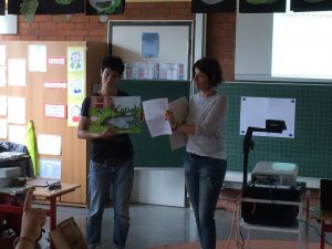 Am Montag, den 25.06.2018 besuchten uns – die Klassen 2a und 2b – Frau Bollermann und Frau Ringelhoff. Zumindest kann man ihre Namen so auf unserer Klassenlektüre „Sponk“ lesen. Im richtigen Leben heißen die beiden jedoch Frau Bollerhoff und Frau Ringelmann. Die beiden Damen haben sich nämlich einen Spaß gemacht und die Endungen ihrer Namen vertauscht.