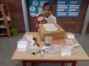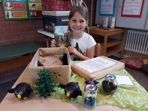 Dabei gestalteten die Kinder einen Schuhkarton, in den sie Gegenstände legten, die während des Lesens des Buches eine wichtige Rolle spielten.