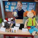 Anhand von selbst gefertigten Aufstellern mit kurzen Informationen zum Inhalt sowie den Gegenständen, erzählten die Kinder den Inhalt ihres Buches.