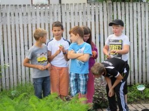 Im Museum ging es mit einer Führung durch Herrn Habel los, bei der wir uns zuerst in der Wohnung die „gute Stube“ anschauten. Dieses Zimmer nutzte man früher nur zu besonderen Anlässen, wie z. B. Ostern, Weihnachten und wenn Besuch kam. Die Wand war mit Schablonenmalerei wunderschön verziert. Das Elternschlafzimmer war gleich nebenan. Dort standen zwei getrennte Betten, darunter ein Nachttopf und eine Waschschüssel auf der Kommode. An der Wand hing eine Hausapotheke mit getrockneten Kräutern. Im Raum nebenan befand sich das Kinderzimmer, das durch ein Ofenrohr beheizbar war. Hier gab es über dem Kinderbett einen Drahtgestell für die Zwiebeln zum Überwintern. Dieser Lagerplatz war mit einem Stuhl, der zu einer Treppe umgeklappt werden konnte, zu erreichen. Danach gingen wir in die Küche, dem wichtigsten Raum im Alltag. Gekocht wurde mit einem Holzherd. In der Speisekammer befand sich eine elektrische Stromversorgungsanlage aus dem Jahr 1910, die der letzte Bewohner selbst einbaute. Dann gingen wir in den Hof. Dort stand über dem Misthaufen ein Klohäuschen aus Holz. Herr Habel erzählte uns, wie sich früher die Menschen wuschen, badeten und zur Toilette gingen. Danach bekam jeder von uns ein Spielzeuggemüse aus Holz. Das echte sollten wir dann im großen Garten finden. Ich hatte eine Karotte und entdeckte sie sofort. Auf einem kleinen Schild mussten wir den Namen lesen, wie früher die Gärtner dazu gesagt haben. Dies war in meinem Fall „gelba Ruum“. Abschließend kamen alle Kinder zusammen, stellten ihr Gemüse mit fränkischem Namen vor und erzählten, wie man es zubereitet.