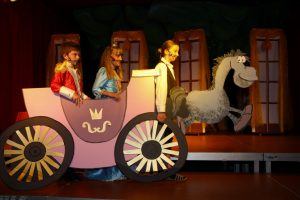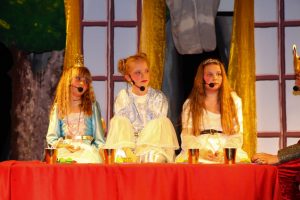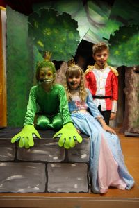 Nach der Begrüßung durch Herrn Dorn tauchten die Zuschauer in die Märchenwelt des „Froschkönigs 2.0“ ab. In unserer Fassung verliert die verwöhnte und eingebildete Königstochter nicht ihre Kugel, sondern ihr Handy im Brunnen. Der technisch versierte Froschkönig bringt es zurück und repariert es auch gleich, nachdem die Königstocher ihm versprechen musste, ihr Kamerad zu werden. Diese jedoch lässt ihn einfach stehen und hält sich nicht an ihr Versprechen.