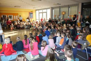 Am darauf folgenden Adventsmontag zeigten die zweiten Klassen ihr Können. Nach dem gemeinsamen Lied „Wir sagen euch an, den lieben Advent“, trugen die beiden Klassen das „Gedicht vom kleinen Stern“ vor und danach das Lied „Von den Sternen für die Sterne“ vor.