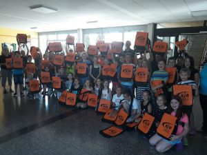 Am Mittwoch, 25.07.2018 kam Herr Rieber vom Kreisjugendring zu uns in die Schule, um die Ehrung in der Aula vorzunehmen. Jeder Schüler erhielt eine Freizeittasche sowie jede teilnehmende Klasse einem Geldbetrag i.H.v. 25 €. Da unsere 4. Klassen zu den zehn schnellsten Einsendern gehörten, erhielte diese darüber hinaus noch einmal 10 € Prämie.
