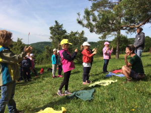 In der Zwischenzeit lernte die Klasse 1b verschiedene Wiesenblumen kennen. Judith Fürst und Tristan Römisch, beide im Naturschutz für den LBV tätig, hatten bereits eine „Schatzkiste“ vorbereitet. Natürlich durften die Kinder in kleinen Gruppen auch ihre eigenen Naturschätze entdecken.