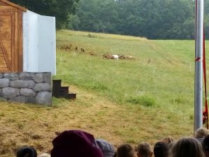 Wir bewunderten die Liebe zum Detail: die einfachen, realen Kostüme. Außerdem staunten wir nicht schlecht: Insgesamt sieben Rollen wurden von nur vier Schauspielern verkörpert. Diese Schauspieler sorgten nicht nur selbst für die Umbauten des Bühnenbildes, sondern musizierten auch noch live. Uns faszinierte außerdem das lebendige Bühnenbild – mit Ziegen als Statisterie.