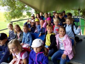 Am Freitag, den 12.7.2019 machten wir – die Klassen 1a, 1b und 2a – uns mit unseren Lehrerinnen Frau Ruckert, Frau Götz und Frau Wittmann mit dem Bus auf den Weg nach Wildensorg. Auf unserem Programm stand ein Theaterbesuch der ganz besonderen Art. Genauer gesagt das Sommertheater „Heidi“ – gespielt vom Bamberger Theaterensemble „Chapeau-Claque“.