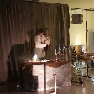 Wir freuten uns sehr, dass auch dieses Jahr Patrik Lumma im Rahmen der Kulturklassen mit dem russischen Märchen „Die Wunderglocke“ zu uns in die Schule kam. Hingerissen staunten die Schülerinnen und Schüler der ersten und zweiten Klasse wie Herr Lumma unser Aulaklassenzimmer in eine Bühne verwandelte und eine tolleTheateratmosphäre schaffte. Mit Hilfe seiner Figuren aus Messing und Bronze erzählte er die Geschichte der Wunderglocke. Jedermann im Raum verfolgte fasziniert mit, wie in der Mitte des Raumes ein Glockenturm entstand, an dem die gefundene Wunderglocke emporgezogen wurde. Alle Zuschauer staunten als diese wunderschöne Glocke wirklich mit einem riesigen Hammer in hunderttausend Stücke zerschlagen wurde und sich diese Stück in kleine Glöckchen verwandelten.