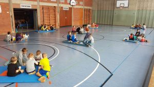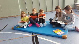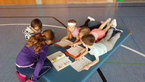 Den 15.11.2019 als den von der Stiftung Lesen initiierten Vorlesetag, nutzte die Erstklässler der 1b und ihre Lesepaten aus der 3c, um sich auf kleinen „Leseinseln“ in der Turnhalle gegenseitig vorzulesen. Stolz trugen die Leseanfänger kurze Texte aus der Fibel vor und zeigten wie flott sie die Silbenteppiche beherrschten. Die „Großen“ revanchierten sich mit dem Vorlesen ihrer Lieblingsgeschichte, bei der nun die Kleinen andächtig lauschten. Da Lesen hungrig macht, gab es zum Abschluss gab es für alle Beteiligten Russisches Brot.