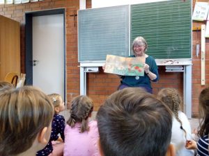 Frau Weiß, eine ehrenamtliche Mitarbeiterin unserer Gemeindebücherei, kam zu Besuch und brachte uns ein wunderschönes Bilderbuch mit: