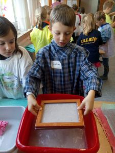 Wir durften schließlich selbst aus altem Papier neues Papier herstellen.