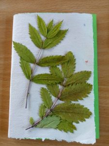 Nachdem das Papier getrocknet und gebügelt war, konnten wir es für die Gestaltung unserer Herbstkarten verwenden.