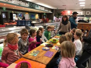 Aus diesem Grund haben wir uns in den zweiten Klassen bereits längere Zeit mit dem Thema „Obst und Gemüse“ beschäftigt. Zum Abschluss waren wir am 28.11.2019 in unseren Edeka-Markt eingeladen, um dort von Frau Beckstein, einer Ernährungsberaterin, noch mehr über eine gesunde Ernährung zu erfahren.