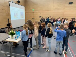 Mit viel Engagement und lebendiger Erzählweise führte sie die jungen Zuhörer in die Welt von Pernille und ihren Geisterschwestern ein. Die Schülerinnen und Schüler lauschten gebannt den spannenden Abenteuern der Hauptfiguren und hatten im Anschluss die Möglichkeit, ihre Fragen direkt an die Autorin zu stellen. Besonders begeistert waren die Kinder von Frau Alves’ Offenheit und ihrer Bereitschaft, Einblicke in den Entstehungsprozess eines Buches zu geben.
