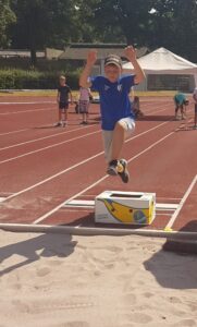 Am 6. Juli 2022 konnte bei idealen Temperaturen das 3. Sport- und Spielefest für unsere elf Grundschulklassen durchgeführt werden. Spaß und Freude an der Bewegung standen natürlich an erster Stelle, auch wenn in den leichtathletischen Disziplinen Wurf, 50m Lauf und Weitsprung jedes Kind hochmotiviert um die Punkte für eine BJS-Urkunde kämpfte. Mit Geschick, Wurfgenauigkeit und Teamgeist meisterten die Klassen gemeinsam die sportlichen Aufgaben an den Spielstationen. Unsere Sportveranstaltung endete mit den Ehrungen der eifrigen Sportlerinnen und Sportler.